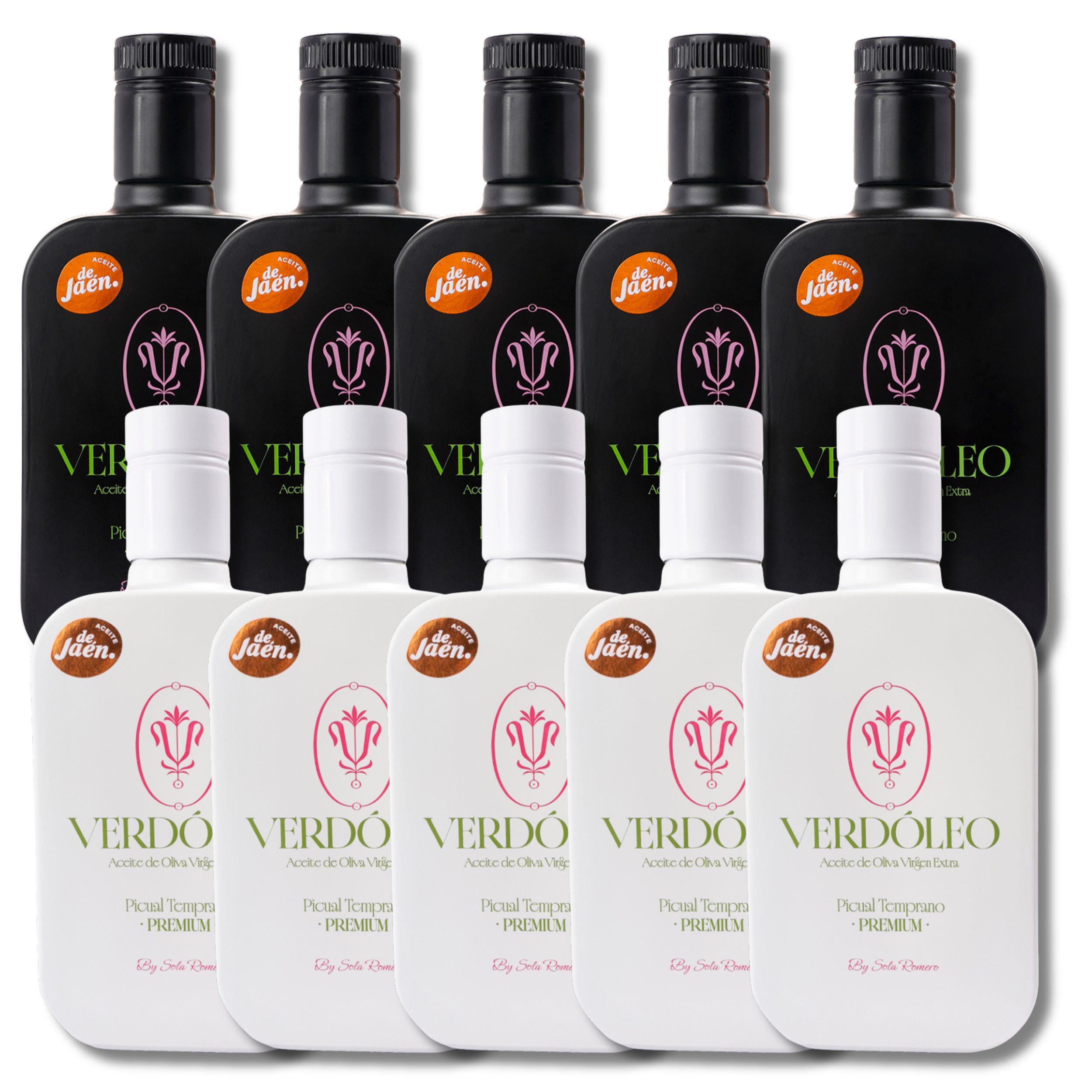 Pack de 10 Botellas Verdóleo Picual – Cosecha Temprana 2025 500ml (black and white edition)